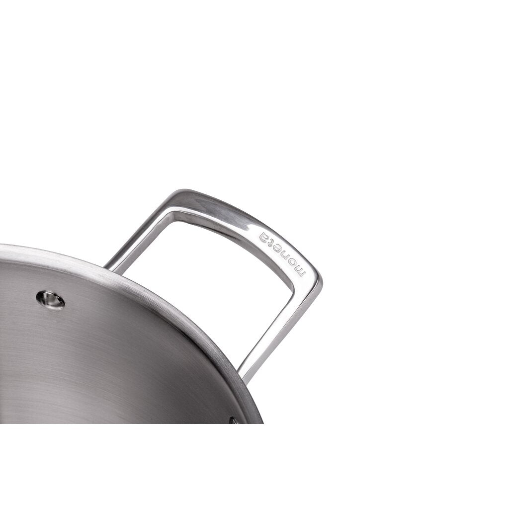 Fondo "Full Induction": Il fondo interamente in acciaio inox ne consente la massima efficienza su piani ad induzione, minimizzando i consumi. Per cotture uniformi e veloci senza sprechi!
