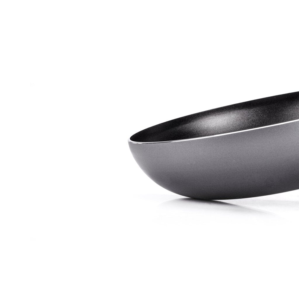Manici Atermici in Bakelite:I manici sono realizzati in Bakelite per evitare il surriscaldamento. Il suo design, puramente italiano, consente una presa morbida e sicura, garantendo una cottura sicura senza il rischio di scottature. La Bakelite è un materiale termoindurente, che rimane freddo anche durante l'uso.