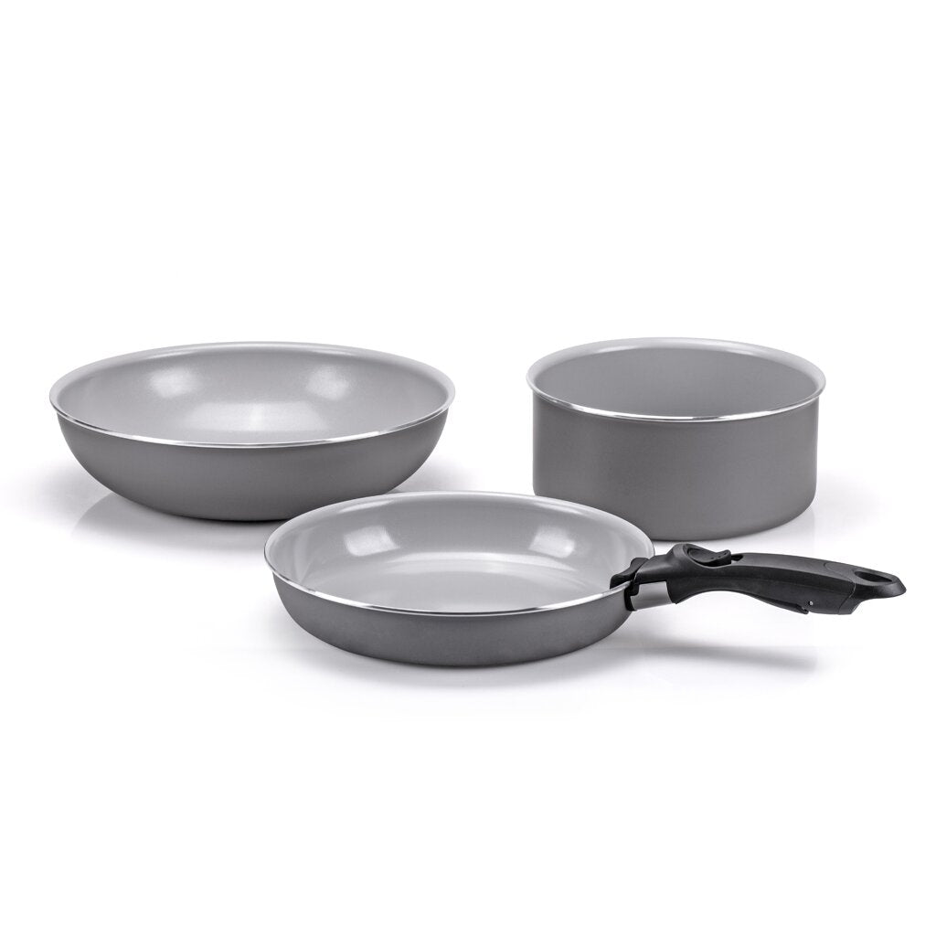 Moneta Melodia Set da 3 pezzi Melodia Minispace: Padella 24 cm, Wok 28 cm, Casseruola 20 cm, 1 manico removibile