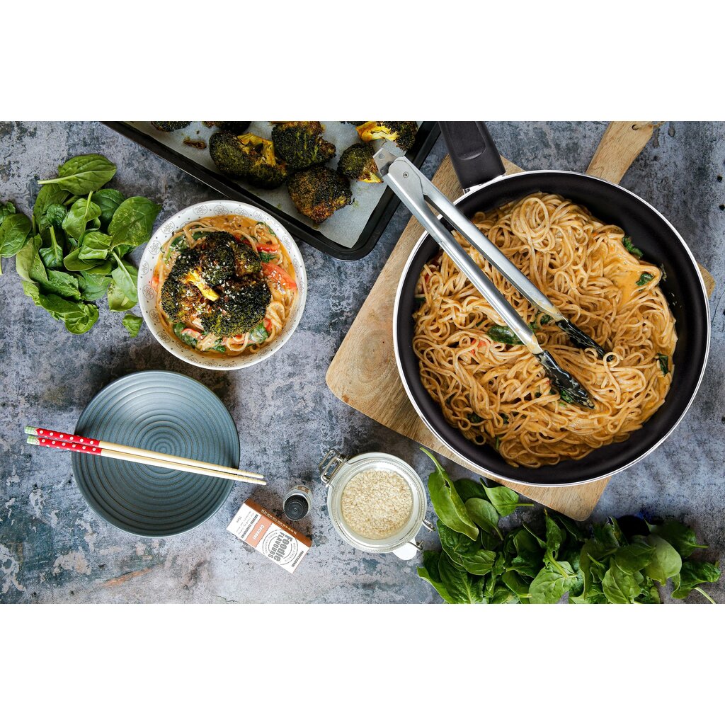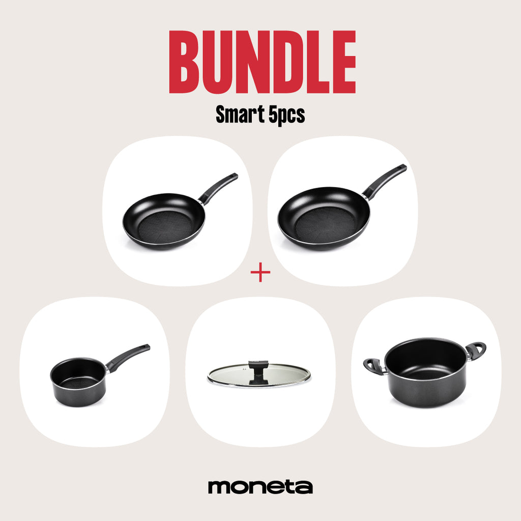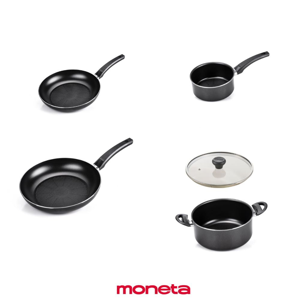 Contiene: Padelle 24-28 cm, Casseruolino 16 cm, Casseruola 24 cm con Coperchio in vetro