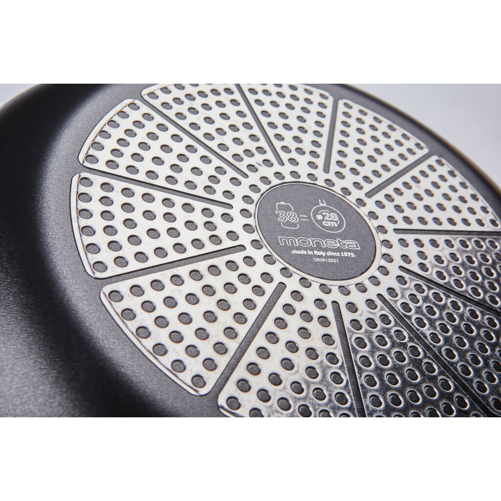Manici Atermici in Bakelite:I manici sono realizzati in Bakelite per evitare il surriscaldamento. Il suo design, puramente italiano, consente una presa morbida e sicura, garantendo una cottura sicura senza il rischio di scottature. La Bakelite è un materiale termoindurente, che rimane freddo anche durante l'uso.