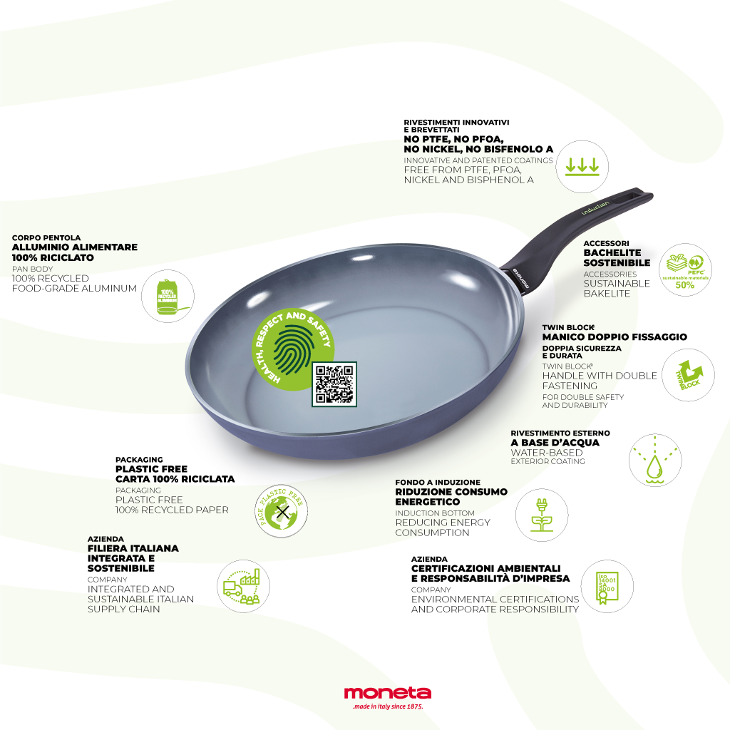 I fondi a induzione nascono da tecnologie proprietarie e brevettate studiate per apportare le migliori performance in termini di planarità del fondo e velocità di riscaldamento: si cucina in minor tempo consumando meno energia.