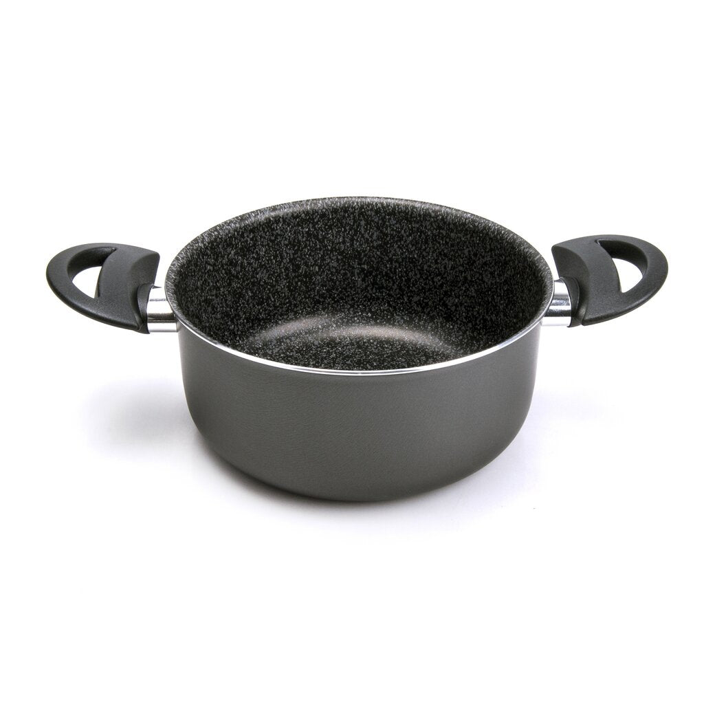 Artech effetto pietra: il rivestimento antiaderente che esalta il sapore naturale dei cibi. Il corpo in alluminio permette un’ottimale diffusione del calore, conservando così il vero gusto delle pietanze. Grazie all’eccezionale antiaderenza di ARTECH è possibile ottenere una cottura sana e leggera, senza olio né grassi. No PFOA, No Nichel, No Bisfenolo A.