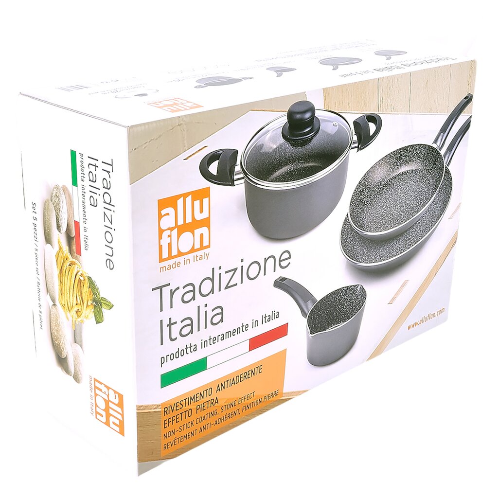 BATTERIA TRADIZIONE ITALIA ALLUFLON Corpo in Alluminio Pressato per una cottura rapida e uniforme. Per la realizzazione vengono impiegate solo leghe adatte al contatto con gli alimenti.