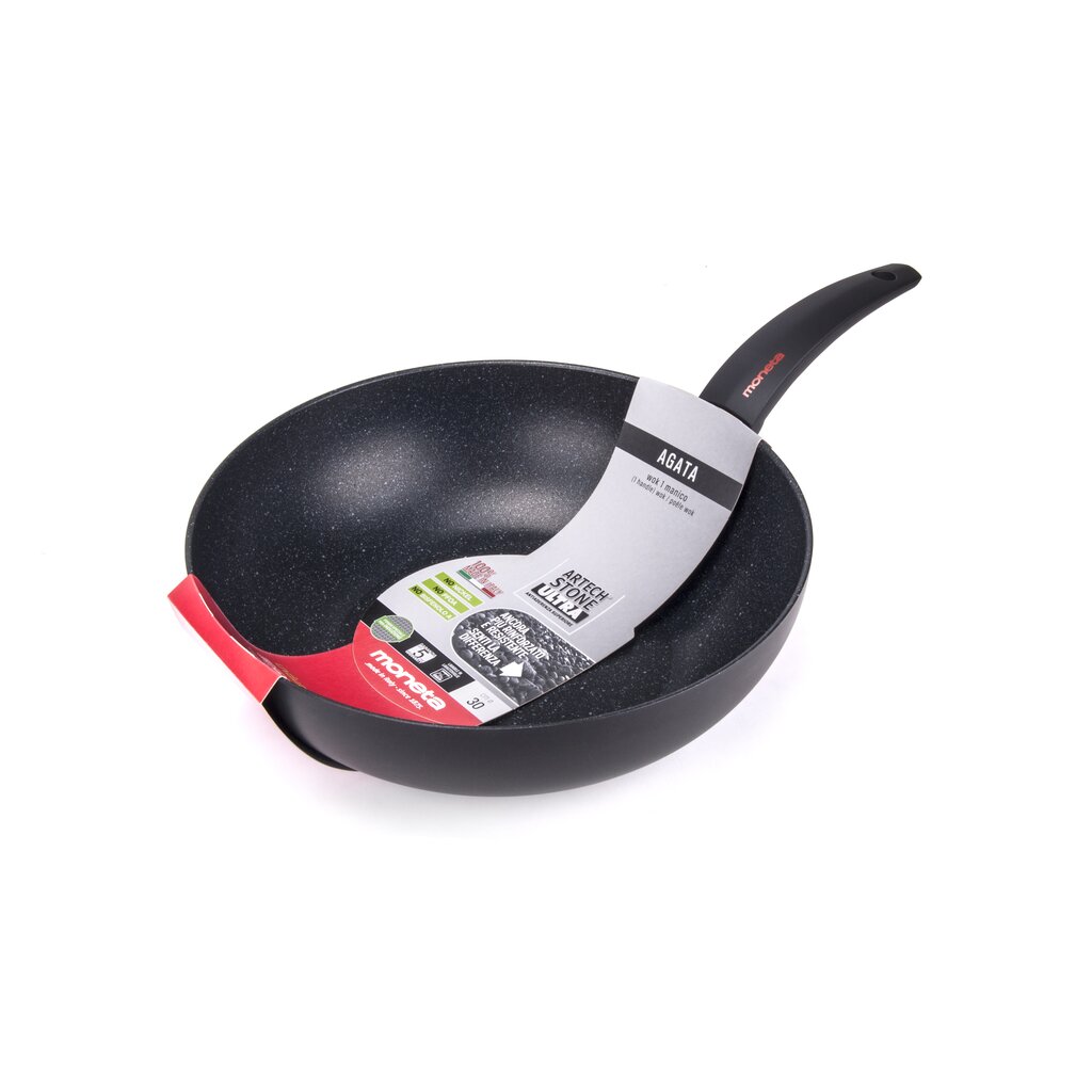 Artech Stone Ultra: ultimo nato tra i rivestimenti Moneta, per una antiaderenza superiore. Artech Stone Ultra è il rivestimento effetto pietra dalla superficie ruvida per chi desidera una pentola che non teme le maniere forti. Ottimo per cotture veloci, uniformi e senza grassi, molto resistente ai graffi e alle abrasioni. Artech Stone Ultra si avvale di un’antiaderenza a triplo strato. No PFOA, No Nichel, No Bisfenolo A.