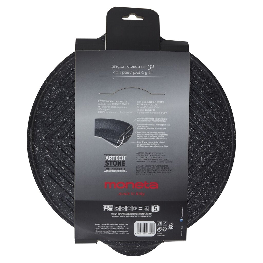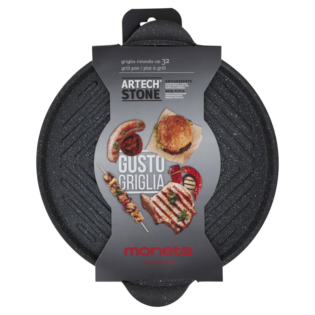 Artech Stone: ultimo nato tra i rivestimenti Moneta, per una antiaderenza superiore. Artech Stone è il rivestimento effetto pietra dalla superficie ruvida per chi desidera una pentola che non teme le maniere forti. Ottimo per cotture veloci, uniformi e senza grassi, molto resistente ai graffi e alle abrasioni. Artech Stone si avvale di un’antiaderenza a triplo strato. No PFOA, No Nichel, No Bisfenolo A.